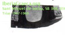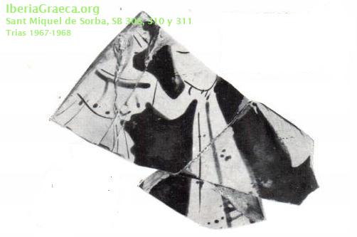 Observaciones : Tres fragmentos de una tapadera de lekanis. El instrumento que lleva la figura femenina es una especie de pandero o pandereta, pero podría tratarse también de un tímpanos. Según Cura 2000b, además de estos tres fragmentos citados por Trias 1967-1968, los fragmentos SB 318, SB 330, SB 325 y SB 324 podrían pertenecer a la misma tapadera de lecanis. Autor: Pol Carreras (CIG) Supervisor: Xavier Aquilué (CIG) Fecha: 13-09-2016 |