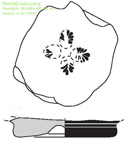 Origen : Ática Técnica : C. de barniz negro Forma : Copa con pie bajo Parte Conservada : Base DECORACIÓN