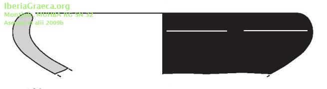 Origen : Ática Técnica : C. de barniz negro Forma : Cuenco Tipo : Lamboglia 21 Parte Conservada : Borde DECORACIÓN