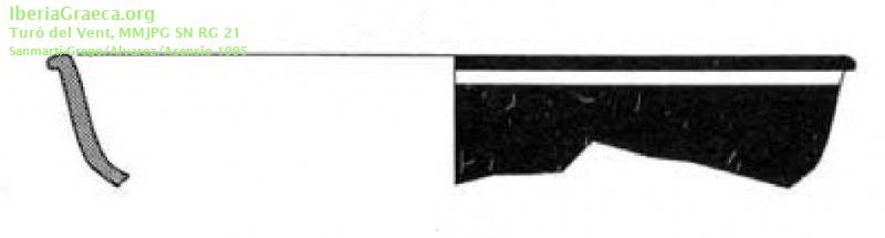 Origen : Ática Técnica : C. de barniz negro Forma : Cuenco Tipo : Lamboglia 21 / Morel 2771 Parte Conservada : Borde DECORACIÓN Observaciones : Se encontraron un mínimo de 2 ejemplares más del mismo tipo en la excavación. Autor: Pol Carreras (CIG) Supervisor: Xavier Aquilué (CIG) Fecha: 09-02-2017 |