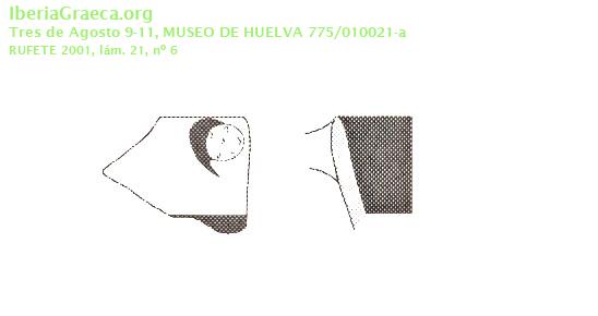 Procedencia: Huelva. Calle Tres de Agosto, nº 9-11 - Huelva (Huelva) Contexto: Nivel I Cronología: 570 aC. | 530 aC. IMÁGENES ASOCIADAS