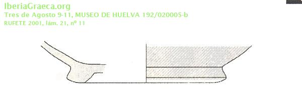 Procedencia: Huelva. Calle Tres de Agosto, nº 9-11 - Huelva (Huelva) Contexto: Nivel I Cronología: 570 aC. | 550 aC. IMÁGENES ASOCIADAS