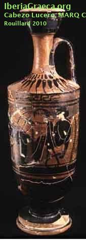 Origen : Ática Técnica : C. de figuras negras Forma : Lécito Parte Conservada : Perfil completo Autor/Taller : HAIMON P group DECORACIÓN