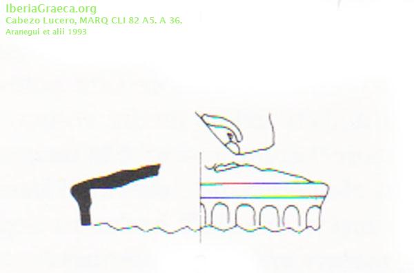 Procedencia: Cabezo Lucero - Guardamar del Segura (Alacant) Contexto: PUNTO 51. (A 5, N-E). LUGAR DE INCINERACIÓN Y A SU LADO, DEPOSICIÓN DE RESTOS HUMANOS CON SUS AJUARES. Cronología: 400 aC. | 350 aC. IMÁGENES ASOCIADAS