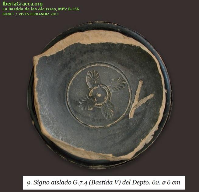 Observaciones : La lengua del signo no es clara. Según BONET/VIVES-FERRANDIZ 2011 en la nota 7 (pág. 236): "Como se ve claramente en la fotografía se trata de un signo Y, lo que excluye escritura meridional pero no griega, greco-ibérica o levantina." Autor: Alejandra Macián (Universitat de València-EG) Supervisor: José Pérez Ballester (Universitat de València-EG) Fecha: 06-10-2018 |