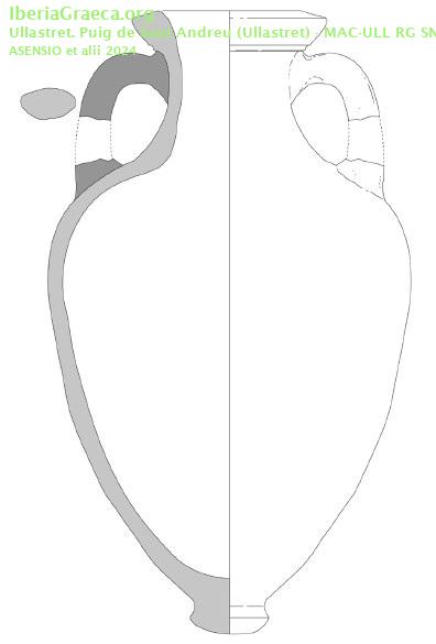 Origen : Massalia Forma : Ánfora de transporte Tipo : A-MAS 4 Parte Conservada : Perfil completo DECORACIÓN Observaciones : Reconstruida. Ejemplar de un ánfora massaliota de la forma A MAS-4 (PY 1993) con un borde del tipo 5 de Py (PY 1978). Autor: Mikel Soberón (CIG) Supervisor: Xavier Aquilué (CIG) Fecha: 19-10-2018 |
