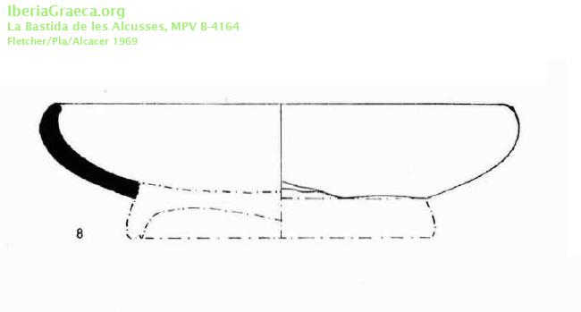 Observaciones : Además de este ejemplar aparece, según FLETCHER/PLA/ALCACER 1969, p. 185: "Fragmento de borde de pátera ática de barniz negro brillante y pasta gris. Forma 21. (no se dibuja.) Inventario B-4.166". Autor: Alejandra Macián (Universitat de València-EG) Supervisor: José Pérez Ballester (Universitat de València-EG) Fecha: 27-10-2018 |