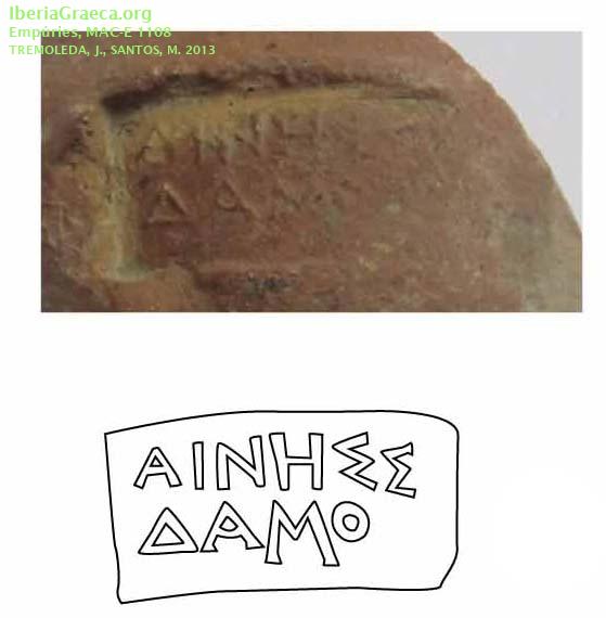 Observaciones : Según Tremoleda/Santos 2013: “La pieza fue hallada en Empuries, pero sin referencias de su procedencia. Sello de cartela rectangular simple con inscripción, dispuesta en dos líneas, de 30 por 16 mm. y letras de 4 mm. Esta mal impreso por la parte derecha, con el nombre del magistrado, sin la preposicion EPI". La clasificación tipològica ha sido realizada con la consulta en linea del estado actual del banco de datos de DICOCER (M. Py, coord.): http://www.syslat.fr/SLC/DICOCER/d.index.html Autor: Conxita Ferrer (CIG) Supervisor: Xavier Aquilué (CIG) Fecha: 29-10-2018 |