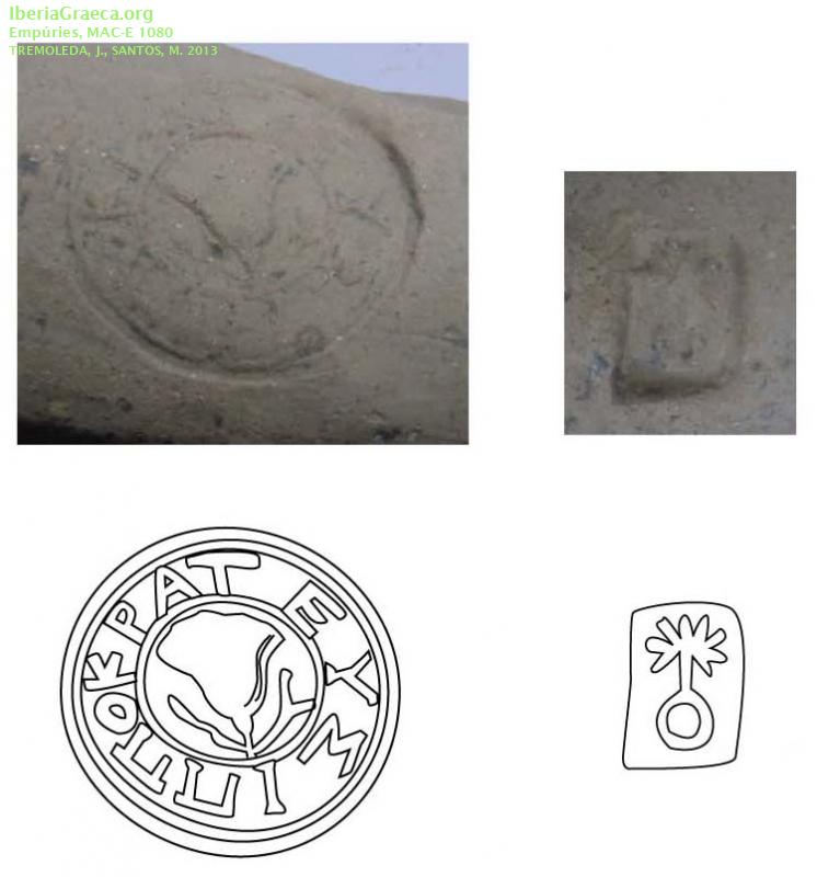 Observaciones : Según Tremoleda/Santos 2013: “La pieza apareció el dia 3 de diciembre de 1957 en la ciudad romana, según lleva escrito “al este de la casa num. 1, parcela de mas al sur”. Sello circular con doble cartela, con la rosa inscrita en la interior y el nombre del fabricante en la exterior. Mide 30 mm. de diámetro, con las letras de 4 mm. Hay un sello secundario, en una cartela cuadrangular simple, de 15 por 8 mm., con un símbolo diminuto en el interior, que podría ser una flor o un busto de Helios". La clasificación tipològica ha sido realizada con la consulta en linea del estado actual del banco de datos de DICOCER (M. Py, coord.): http://www.syslat.fr/SLC/DICOCER/d.index.html Autor: Conxita Ferrer (CIG) Supervisor: Xavier Aquilué (CIG) Fecha: 29-10-2018 |