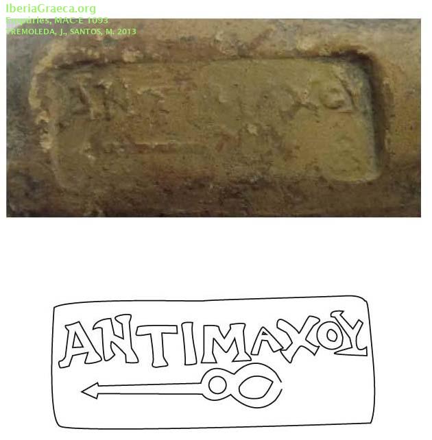 Observaciones : Según Tremoleda/Santos 2013: “La pieza presenta un sello de cartela rectangular simple con inscripción, dispuesta en una sola línea. Mide 42 por 16 mm., con letras de 4 mm. Nombre del fabricante, con un caduceo en la parte inferior". La clasificación tipològica ha sido realizada con la consulta en linea del estado actual del banco de datos de DICOCER (M. Py, coord.): http://www.syslat.fr/SLC/DICOCER/d.index.html Autor: Conxita Ferrer (CIG) Supervisor: Xavier Aquilué (CIG) Fecha: 29-10-2018 |