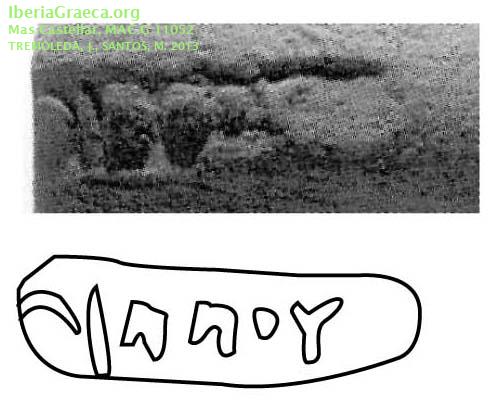 Observaciones : Según Tremoleda/Santos 2013: “La pieza apareció en la casa no 2, zona 11-4, 4, el año 1994. Cartela rectangular con los lados redondeados y con letras en relieve. Mide 45 x 10 mm. letras entre 2 y 7 mm". Autor: Conxita Ferrer (CIG) Supervisor: Xavier Aquilué (CIG) Fecha: 31-10-2018 |