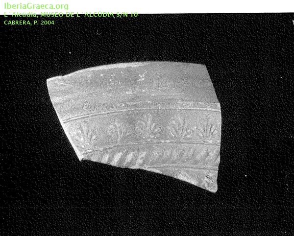 Origen : Jonia Técnica : C. de relieves Forma : Cuenco borde entrante Parte Conservada : Borde DECORACIÓN