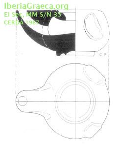 Origen : Ática Técnica : C. de barniz negro Forma : Lucerna Tipo : Howland 24-C = Broneer VII del Ágora de Atenas (variante) Parte Conservada : Perfil completo DECORACIÓN