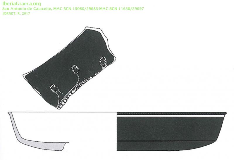 Origen : Ática Técnica : C. de barniz negro Forma : Cuenco Tipo : Lamb. 22 Parte Conservada : Borde y pared DECORACIÓN