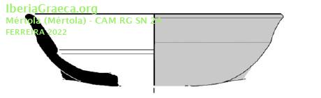 Observaciones : Presenta un labio cóncavo en la superficie externa y un saliente bien marcado en la superficie interna, en la conexión entre el labio y la pared. Pasta de color naranja claro con tonalidad rosácea, muy compacta y muy depurada. Barniz negro/rojo, con manchas grisáceas, adherente, fino y brillante. Autor: Conxita Ferrer (CIG) Supervisor: Xavier Aquilué (CIG) Fecha: 02-12-2023 |