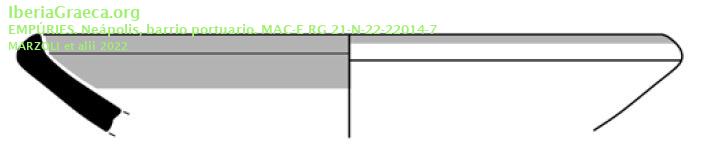 Observaciones : Cuenco muy abierto o plato de cerámica de pasta clara de origen massaliota con decoración pintada de una banda en la cara interna y una línea en la externa de color rojizo. Hallada en los niveles de la fase 2A del sector N-22 del barrio portuario de la Neápolis de Empúries. Autor: Conxita Ferrer (CIG) Supervisor: Xavier Aquilué (CIG) Fecha: 10-08-2024 |