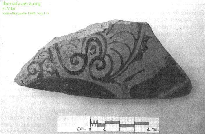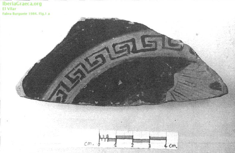 Observaciones : Medidas: 5,2 x 12 x 1 cms. Pasta de buena calidad, muy fina y de tonos rosados. Pigmento negro,excelente, poco intenso aplicado en una finísima capa que deja entrever el color de la arcilla. Interior: dibujo geométrico pintado a base de grecas que rodea una escena indescifrable. Exterior: motivos florales al lado de una figura masculina desnuda de la que se conserva la parte inferior. DM: 120mm Autor: Faustino Pérez Moracho (ICAC) Supervisor: M. T. Miró (Generalitat de Catalunya) Fecha: 11-11-2011 |