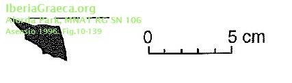 Origen : Massalia Forma : Ánfora de transporte Parte Conservada : Borde DECORACIÓN Observaciones : Pendiente el número de inventario del MNAT Autor: Faustino Pérez Moracho (ICAC) Supervisor: M. T. Miró (Generalitat de Catalunya) Fecha: 21-12-2011 |