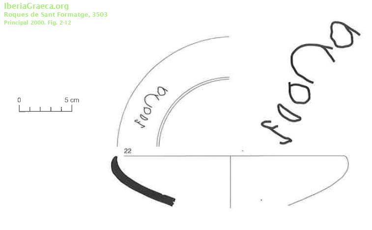 Observaciones : Rompe con la tradicional ubicación de los epígrafes incisos sobre vasos cerámicos (generalmente dispuestos en la superficie externa del vaso) ya que éste se encuentra sobre la superficie interna del mismo Autor: Faustino Pérez Moracho (ICAC) Supervisor: M. T. Miró (Generalitat de Catalunya) Fecha: 27-09-2012 |