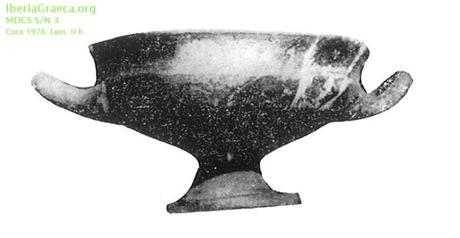 Origen : Griega occidental Forma : Copa Tipo : imitación B2 Parte Conservada : Perfil completo DECORACIÓN Observaciones : CURA 1978 comenta que es fabricación local imitando copas Jonias B2. Pendiente el número de inventario del Museu Diocesà i Comarcal de Solsona Autor: Faustino Pérez Moracho (ICAC) Supervisor: M. T. Miró (Generalitat de Catalunya) Fecha: 28-09-2012 |
