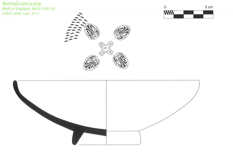 Origen : Rhode Técnica : C. de barniz negro Forma : Cuenco Tipo : Lamboglia 26/ Morel F 2762, 2764, 2812 Parte Conservada : Perfil completo DECORACIÓN