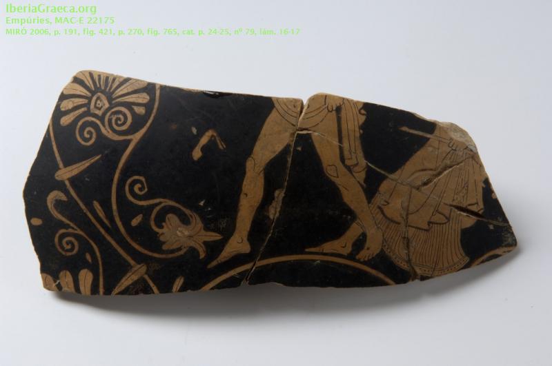Cinco fragmentos de la pieza se encuentran en el MAC-B (4320) dos fragmentos en el MAC-E (4332 y 22175) y otro fragmento en el MAC-B (4332). Según DE HOZ GARCIA-BELLIDO 2014: dipinto de tipo kαλος.Autor: Pol Carreras (CIG) Supervisor: Xavier Aquilué (CIG) Fecha: 16-10-2013