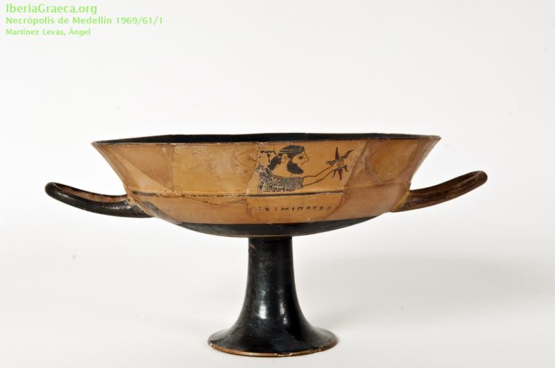 Origen : ÁticaTécnica : C. de figuras negrasForma : Copa de labioParte Conservada : Perfil completoAutor/Taller : EUCHEIROS potter, MEDELLIN PDECORACIÓN