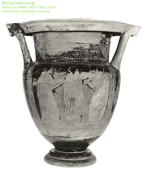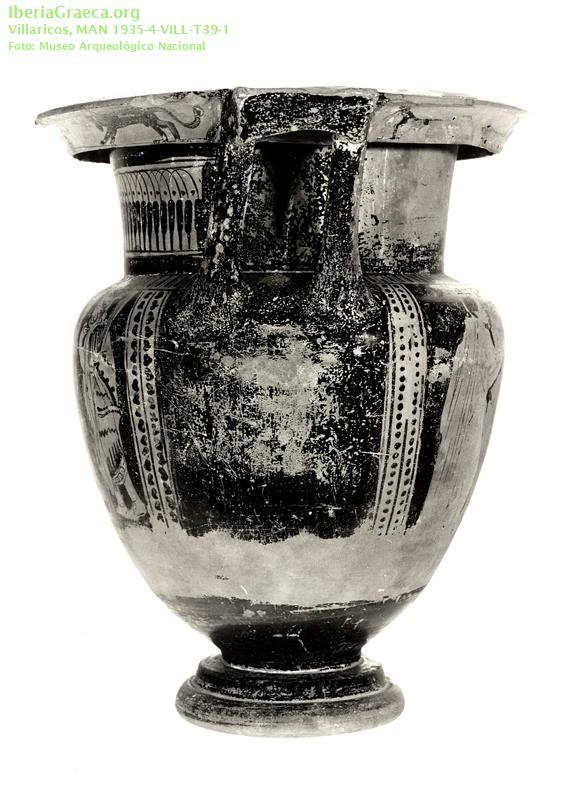 Origen : ÁticaTécnica : C. de figuras rojasForma : Cratera de columnasParte Conservada : Perfil completoDECORACIÓN