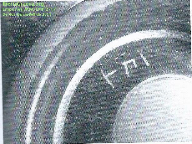 Observaciones : Según DE HOZ GARCÍA BELLIDO 2014, inscripción de indicación comercial de precio. De tratarse la primera letra el numeral H (100), seria entonces el número de vasos del lote (106) donde se encontraría este. Autor: Pol Carreras (CIG) Supervisor: Xavier Aquilué (CIG) Fecha: 28-12-2015 |