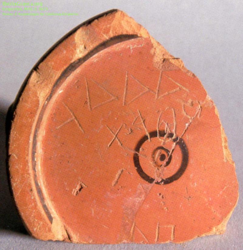 Observaciones : Según DE HOZ GARCÍA BELLIDO 2014, el primer grafito griego es un grafito comercial de precio, escrito de derecha a izquierda. El grafito púnico puede corresponder a un nombre y propio. El segundo grafito griego es un numeral escrito de izquierda a derecha. Autor: Pol Carreras (CIG) Supervisor: Xavier Aquilué (CIG) Fecha: 28-12-2015 |