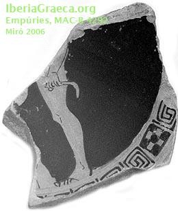 | Tipo Decoración : Barnizada, Pintada Escena : Palestra Personajes : Figura masculina desnuda Elementos Secundarios : Estrígile, Roca Motivos Ornamentales : Greca de meandros y ajedrezado