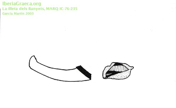 Procedencia: La Illeta dels Banyets - El Campello (Alacant) Contexto: Excavación Llobregat 1976. Cuadro IV, nivel ibérico. Poblado Cronología: 375 aC. | 350 aC. IMÁGENES ASOCIADAS
