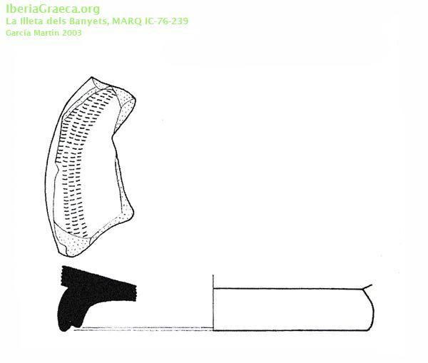 Procedencia: La Illeta dels Banyets - El Campello (Alacant) Contexto: Excavación Llobregat 1976. Cuadro IV, nivel ibérico. Poblado Cronología: 380 aC. | 325 aC. IMÁGENES ASOCIADAS