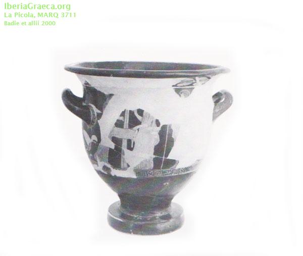 Origen : Ática Técnica : C. de figuras rojas Forma : Cratera de campana Parte Conservada : Perfil completo Autor/Taller : KADMOS P DECORACIÓN