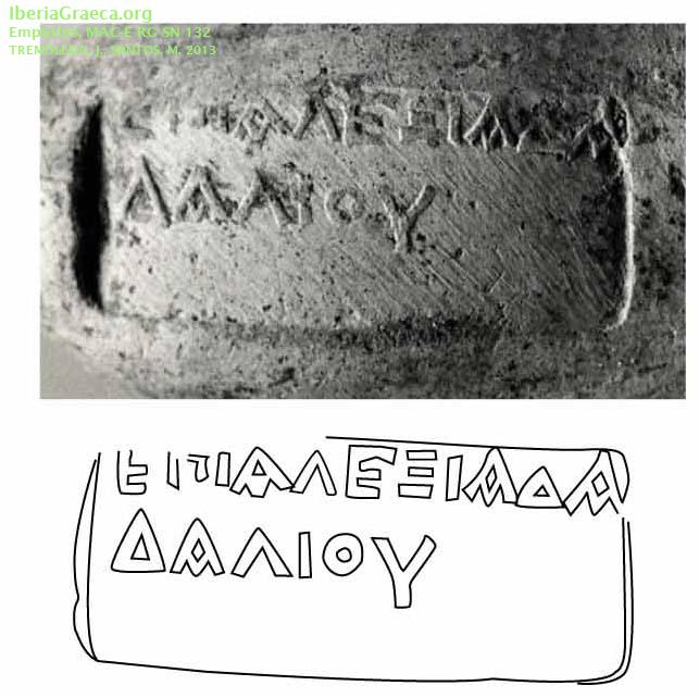Observaciones : Según Tremoleda/Santos 2013: “La pieza se halló en la excavación del cardo de la ciudad romana el 26 de noviembre de 1955. Sello de cartela rectangular simple con inscripcion, dispuesta en dos lineas, de 46 por 20 mm. y letras de 5 mm. Sello bien conservado, sin problemas de lectura. Esta presente el nombre del magistrado, precedido de la preposicion EPI y, en segunda linea, el nombre del mes, en genitivo". La clasificación tipològica ha sido realizada con la consulta en linea del estado actual del banco de datos de DICOCER (M. Py, coord.): http://www.syslat.fr/SLC/DICOCER/d.index.html Autor: Conxita Ferrer (CIG) Supervisor: Xavier Aquilué (CIG) Fecha: 29-10-2018 |