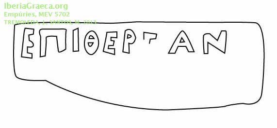 Observaciones : Según Tremoleda/Santos 2013: “La pieza apareció en Empuries, pero se conserva en Vic. Sello de cartela rectangular simple con inscripción, dispuesta en dos líneas, de 48 por 17 mm. y letras de 5 mm. Conserva solamente la primera línea, con el nombre del magistrado, precedido de la preposición EPI". La clasificación tipològica ha sido realizada con la consulta en linea del estado actual del banco de datos de DICOCER (M. Py, coord.): http://www.syslat.fr/SLC/DICOCER/d.index.html Autor: Conxita Ferrer (CIG) Supervisor: Xavier Aquilué (CIG) Fecha: 29-10-2018 |